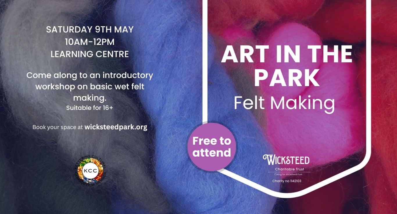 Join us on the 9th May 2026 from 10am until 12pm for the Art in the Park – Felt Making workshop in the Learning Centre.
